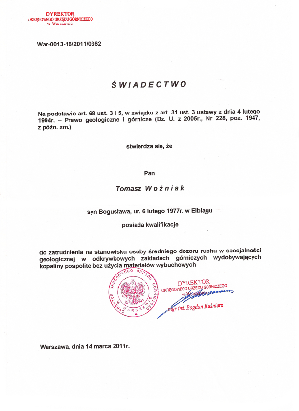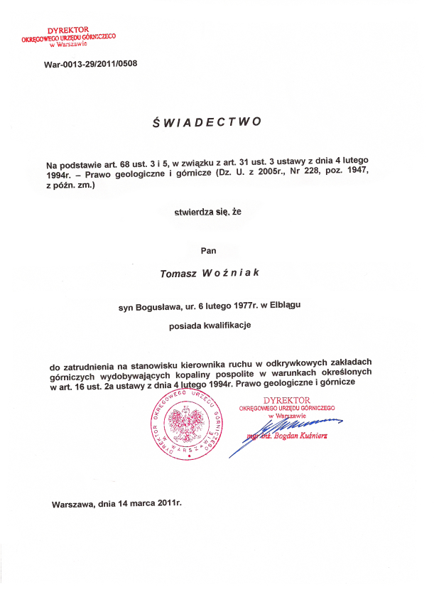 Poniżej przedstawiamy nasze uprawnienia oraz świadectwa, prosimy kliknąć aby obejrzeć
